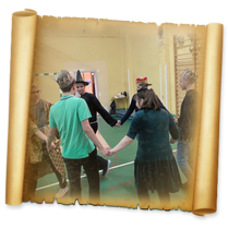 Uczestnicy Disco Harcy przeobrazili się w dworzan i dwórki,
